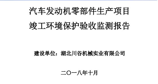 湖北川谷機械實業有限公司汽車發動機零部件生產項目竣工環境保護驗收公示 根據《建設項目環境保護管理條例》(國務院令第682號)和《建設項目竣工環境保護驗收暫行辦...
