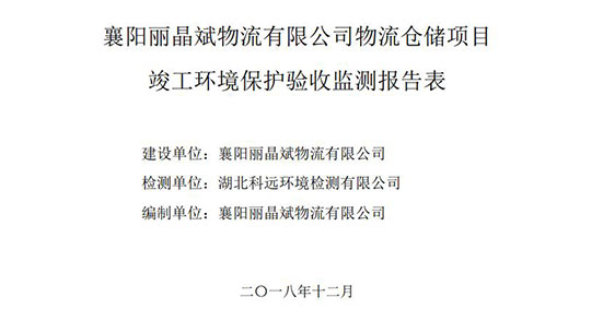 襄陽麗晶斌物流有限公司物流倉儲項目 竣工環境保護驗收公示